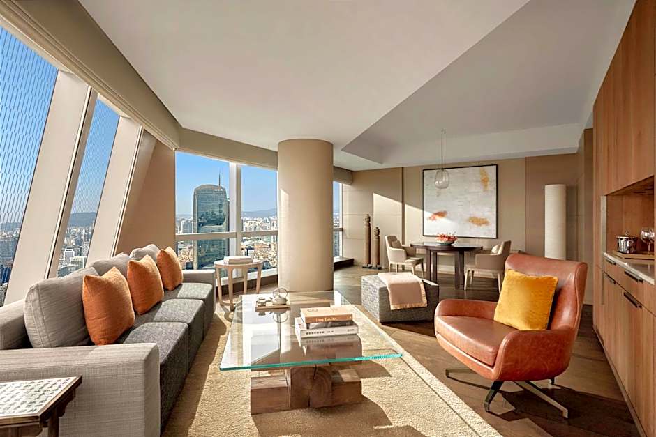 Thoughtful 52 sq m (560 sq ft) room with panoramic skyline views. The hotel’s guestrooms are the embodiment of livable luxury, surprising and delighting the hotel’s distinguished guests with an appealing blend of sophistication and upscale residential comfort. For the room rate including breakfast, guests can enjoy breakfast at the Dining Room on 65F every day. Other guests to enjoy breakfast, an additional fee of CNY 258 per person is required, which can be paid at the property.